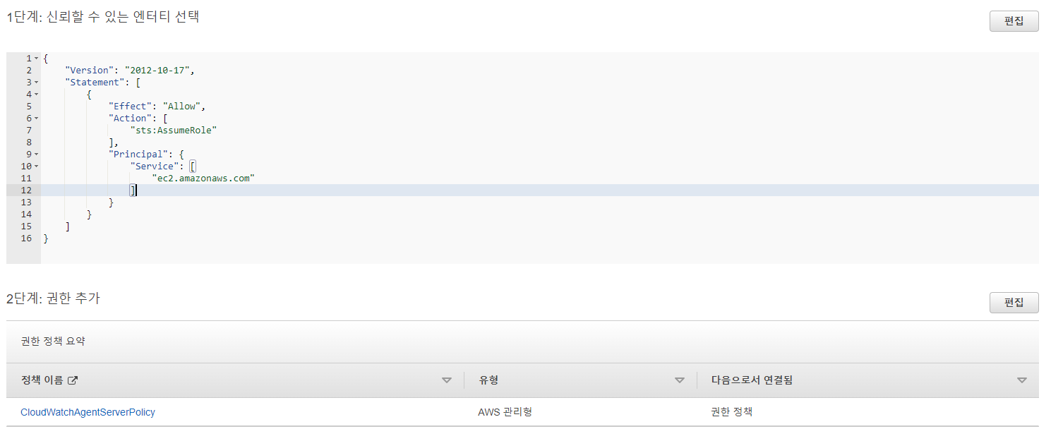 EC2에서 Cloudwatch Agent의 지표들을 수집할 수 있게 정책을 생성해줍니다.